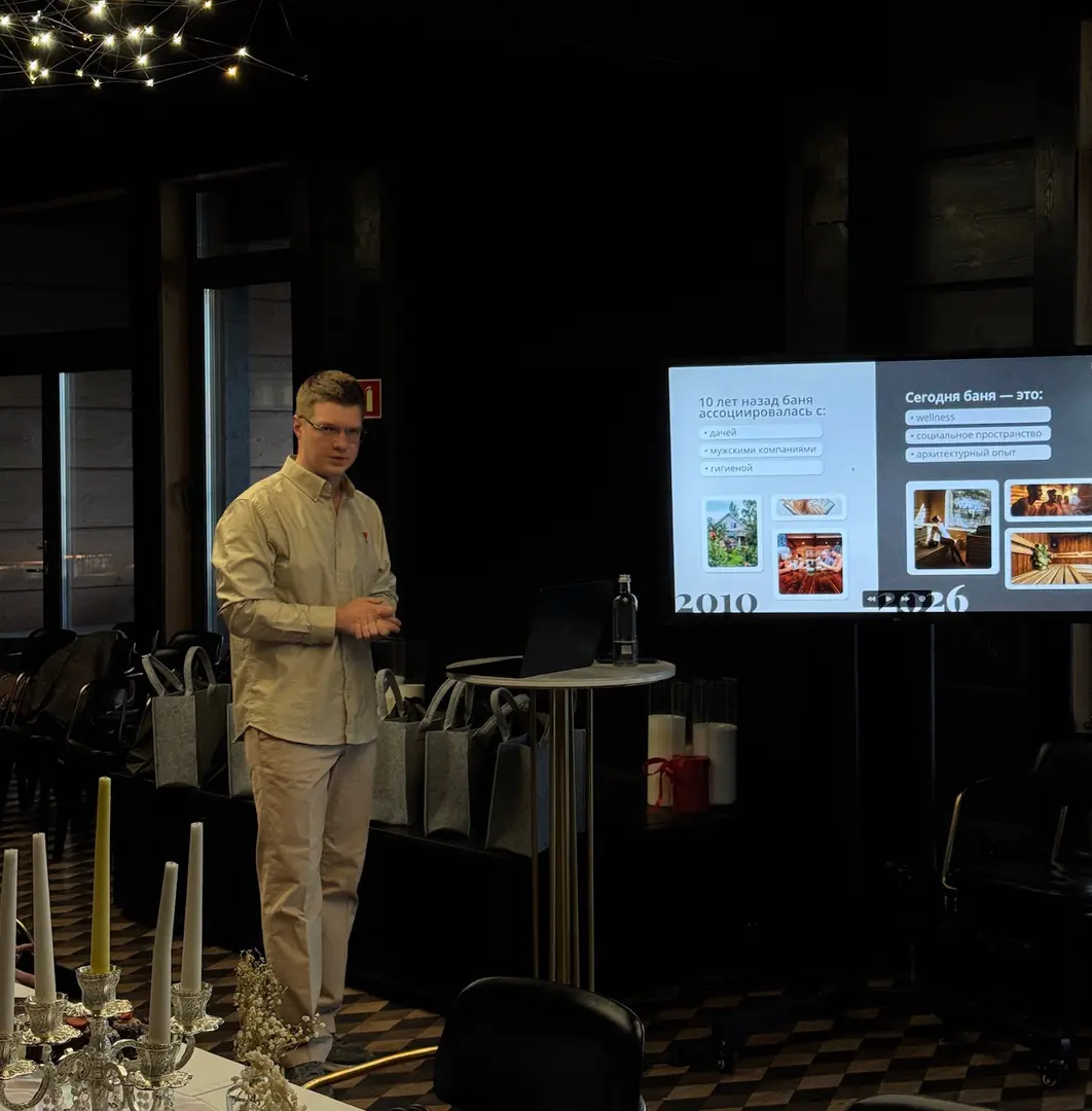 Отдельно говорили о том, какие форматы сегодня действительно откликаются аудитории. Гости все чаще обращают внимание не только на саму баню, но и на то, как в целом устроен визит. В центре внимания сегодня — веллнес-составляющая, архитектура пространства и программы. Именно это во многом влияет на выбор гостя.